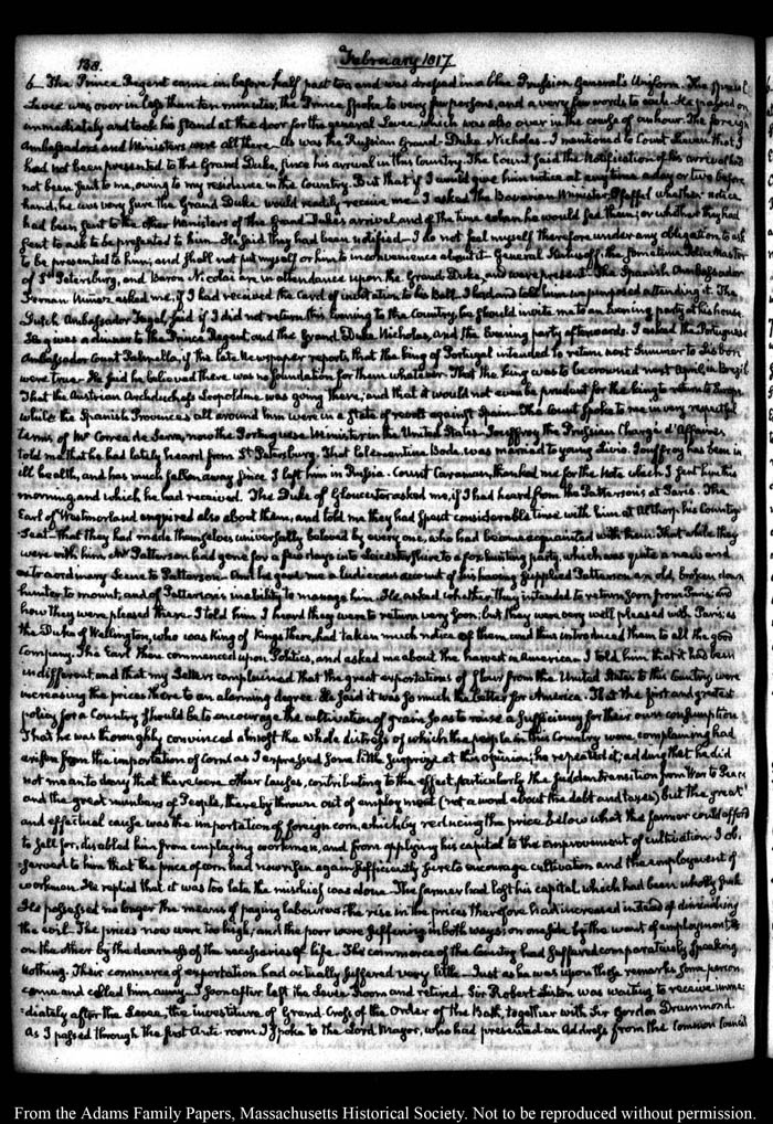 View full, authoritative transcriptions with page images of the diaries at John Quincy Adams Digital Diary part of the Primary Source Cooperative at the MHS.