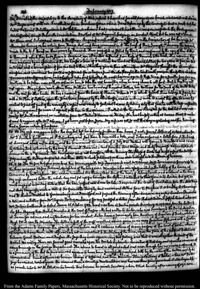 View full, authoritative transcriptions with page images of the diaries at John Quincy Adams Digital Diary part of the Primary Source Cooperative at the MHS.