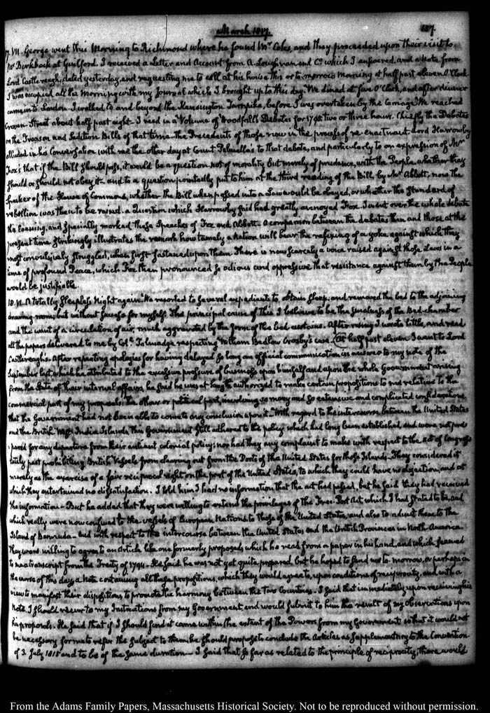 View full, authoritative transcriptions with page images of the diaries at John Quincy Adams Digital Diary part of the Primary Source Cooperative at the MHS.