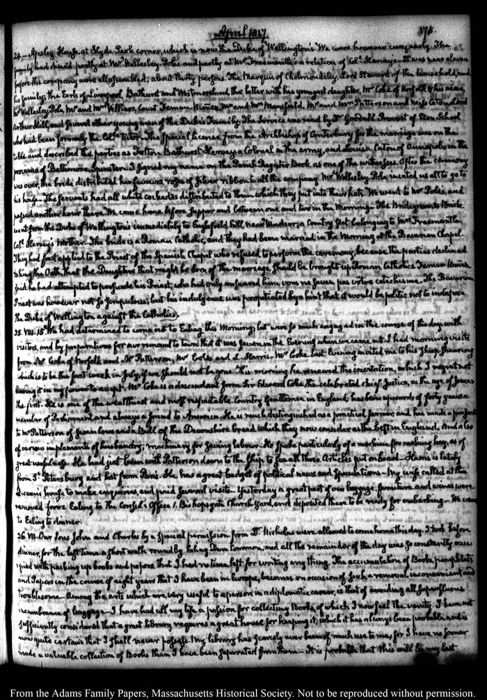 View full, authoritative transcriptions with page images of the diaries at John Quincy Adams Digital Diary part of the Primary Source Cooperative at the MHS.