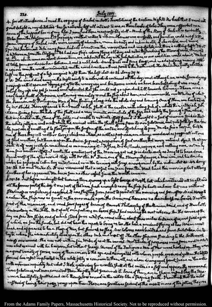 View full, authoritative transcriptions with page images of the diaries at John Quincy Adams Digital Diary part of the Primary Source Cooperative at the MHS.