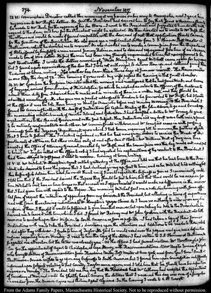 John Quincy Adams diary 30, 1 June 1816 - 31 December 1818, page 274