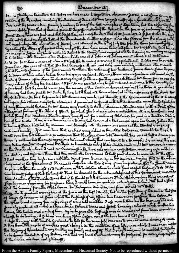 View full, authoritative transcriptions with page images of the diaries at John Quincy Adams Digital Diary part of the Primary Source Cooperative at the MHS.