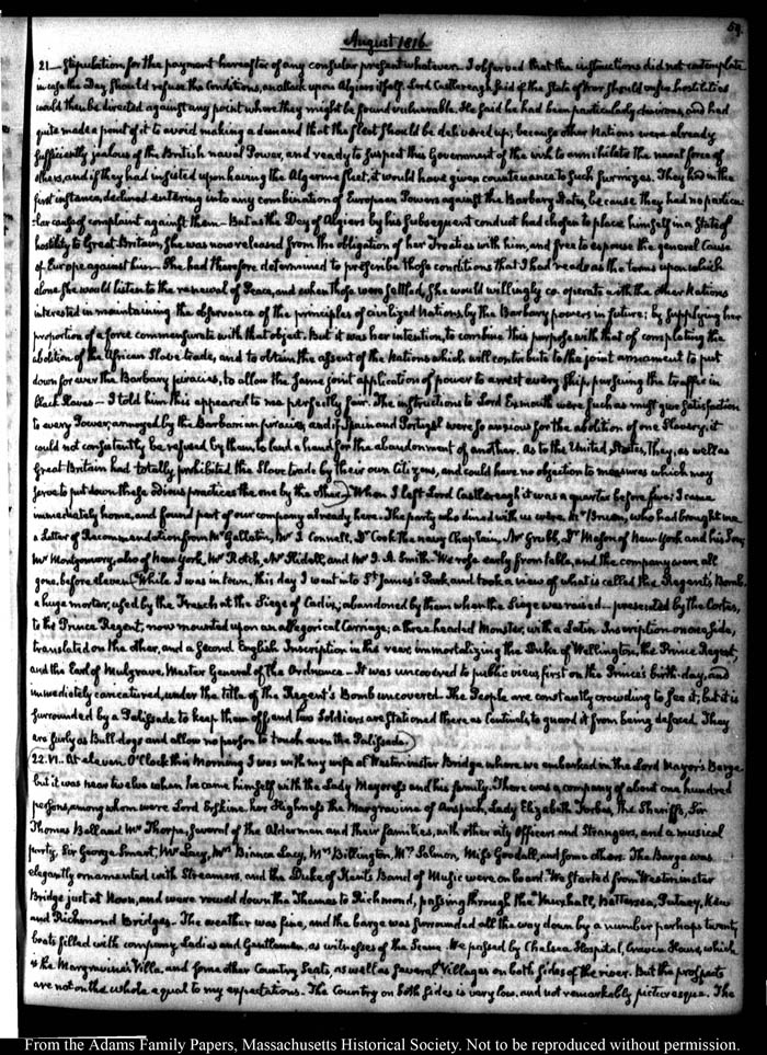 View full, authoritative transcriptions with page images of the diaries at John Quincy Adams Digital Diary part of the Primary Source Cooperative at the MHS.