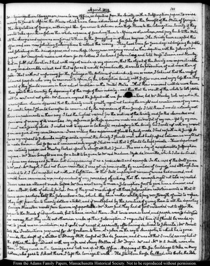 John Quincy Adams diary 31, 1 January 1819 - 20 March 1821, 10 November 1824 - 6 December 1824, page 101