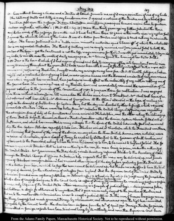 John Quincy Adams diary 31, 1 January 1819 - 20 March 1821, 10 November 1824 - 6 December 1824, page 107