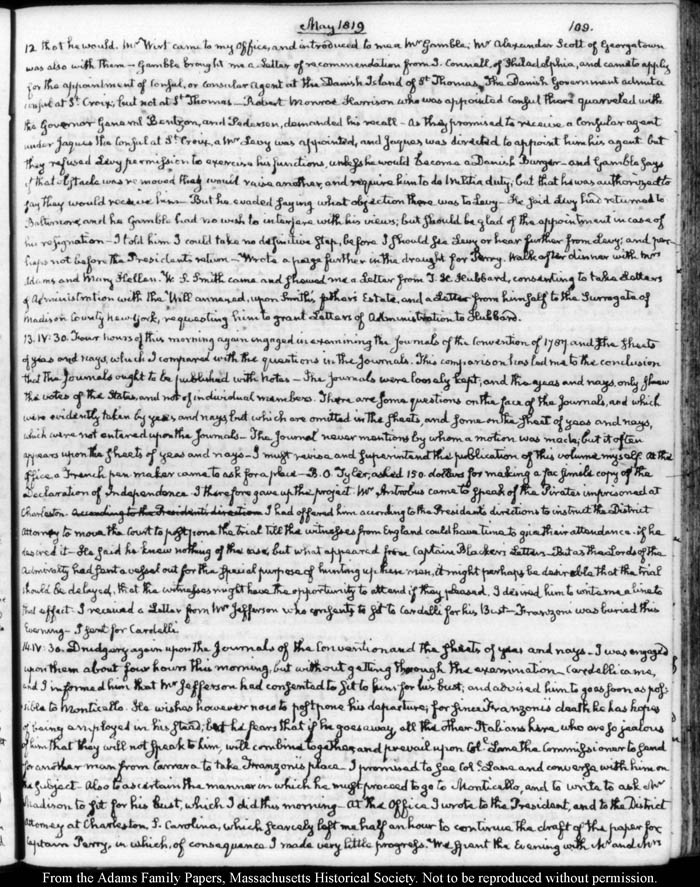 John Quincy Adams diary 31, 1 January 1819 - 20 March 1821, 10 November 1824 - 6 December 1824, page 109