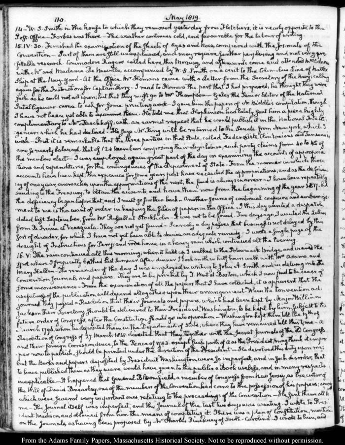 John Quincy Adams diary 31, 1 January 1819 - 20 March 1821, 10 November 1824 - 6 December 1824, page 110