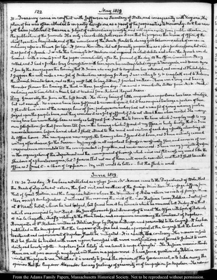 John Quincy Adams diary 31, 1 January 1819 - 20 March 1821, 10 November 1824 - 6 December 1824, page 122