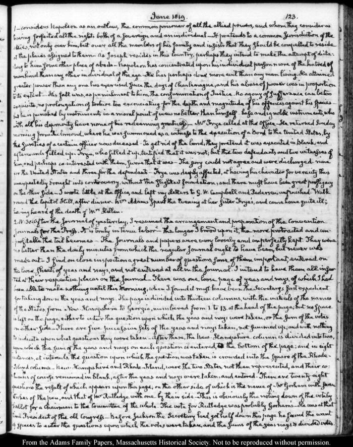 John Quincy Adams diary 31, 1 January 1819 - 20 March 1821, 10 November 1824 - 6 December 1824, page 123