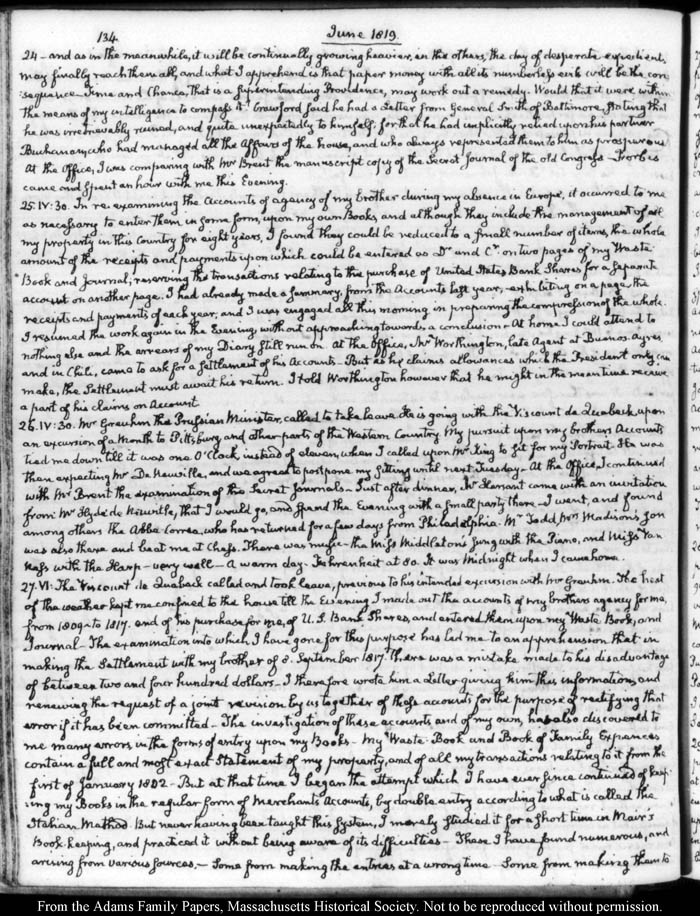 John Quincy Adams diary 31, 1 January 1819 - 20 March 1821, 10 November 1824 - 6 December 1824, page 134