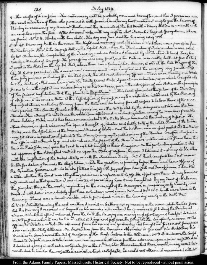 View full, authoritative transcriptions with page images of the diaries at John Quincy Adams Digital Diary part of the Primary Source Cooperative at the MHS.