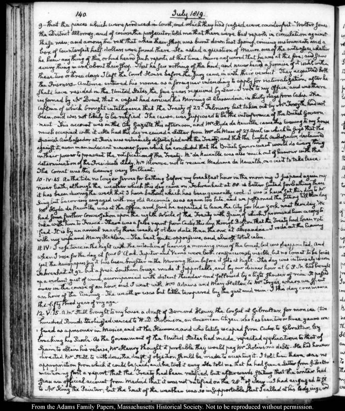 John Quincy Adams diary 31, 1 January 1819 - 20 March 1821, 10 November 1824 - 6 December 1824, page 140