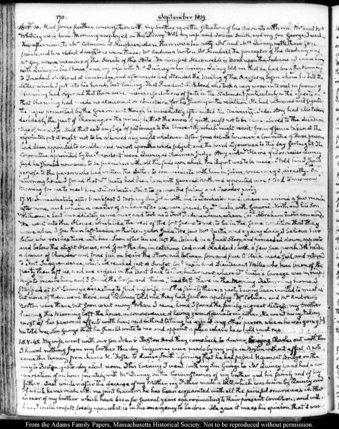 John Quincy Adams diary 31, 1 January 1819 - 20 March 1821, 10 November 1824 - 6 December 1824, page 170