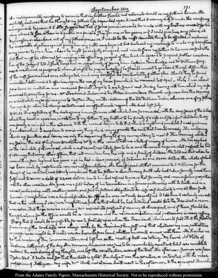 John Quincy Adams diary 31, 1 January 1819 - 20 March 1821, 10 November 1824 - 6 December 1824, page 171