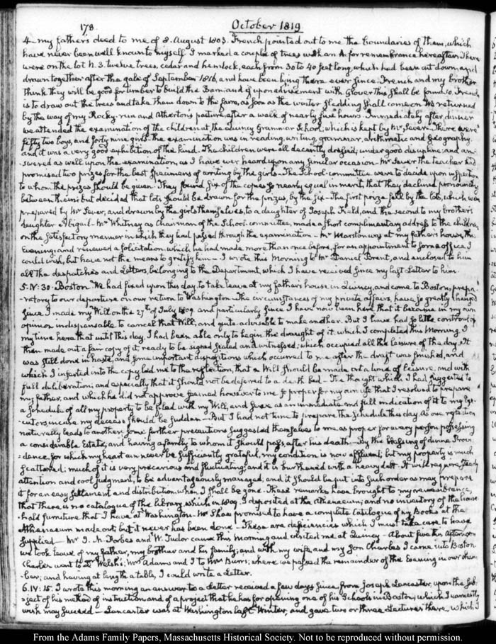 View full, authoritative transcriptions with page images of the diaries at John Quincy Adams Digital Diary part of the Primary Source Cooperative at the MHS.