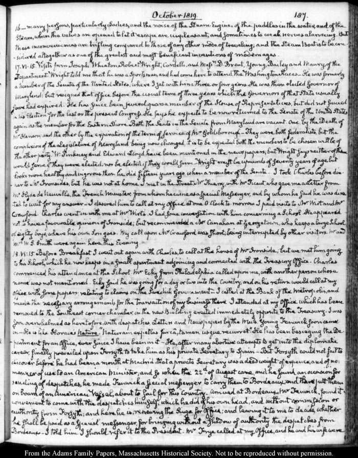 John Quincy Adams diary 31, 1 January 1819 - 20 March 1821, 10 November 1824 - 6 December 1824, page 187