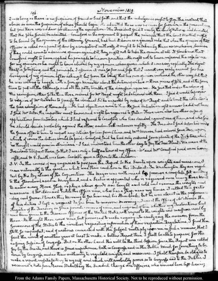 John Quincy Adams diary 31, 1 January 1819 - 20 March 1821, 10 November 1824 - 6 December 1824, page 196
