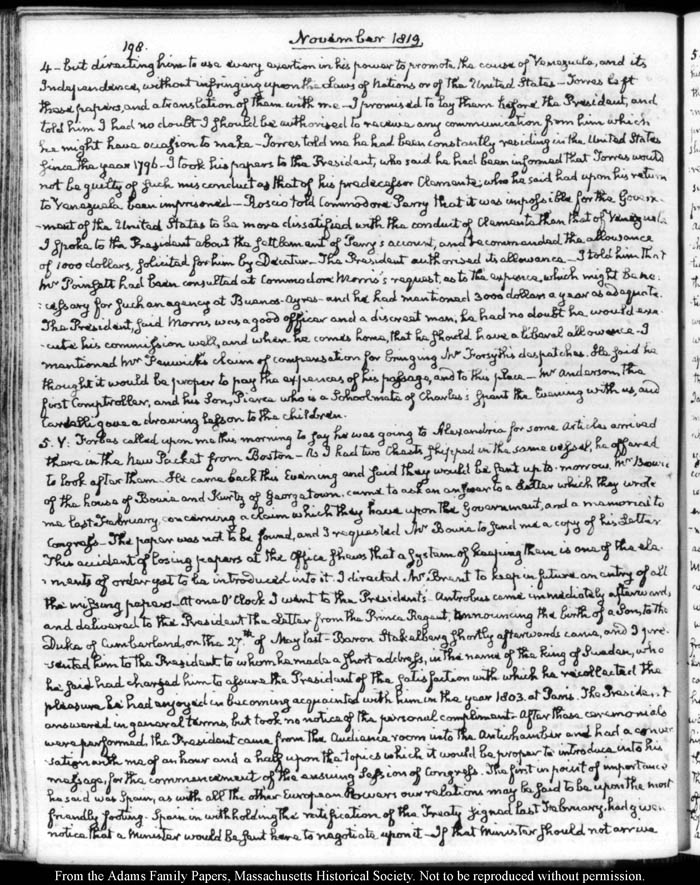 John Quincy Adams diary 31, 1 January 1819 - 20 March 1821, 10 November 1824 - 6 December 1824, page 198
