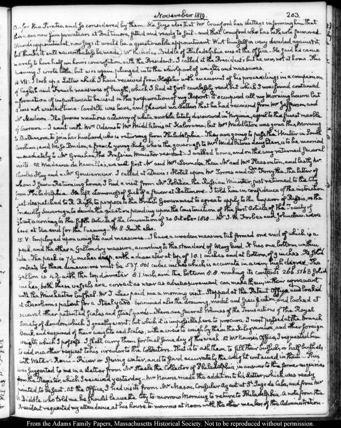 John Quincy Adams diary 31, 1 January 1819 - 20 March 1821, 10 November 1824 - 6 December 1824, page 203
