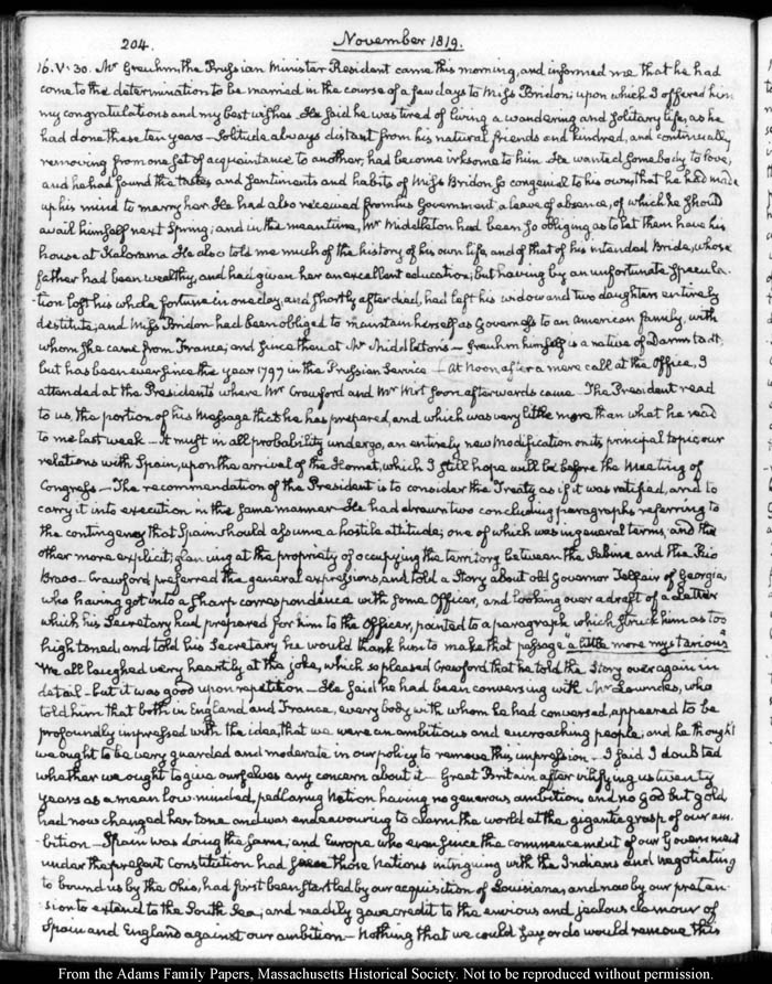 John Quincy Adams diary 31, 1 January 1819 - 20 March 1821, 10 November 1824 - 6 December 1824, page 204
