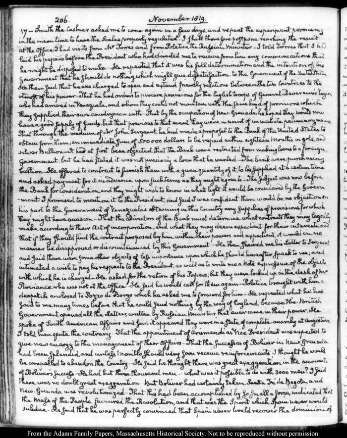 John Quincy Adams diary 31, 1 January 1819 - 20 March 1821, 10 November 1824 - 6 December 1824, page 206