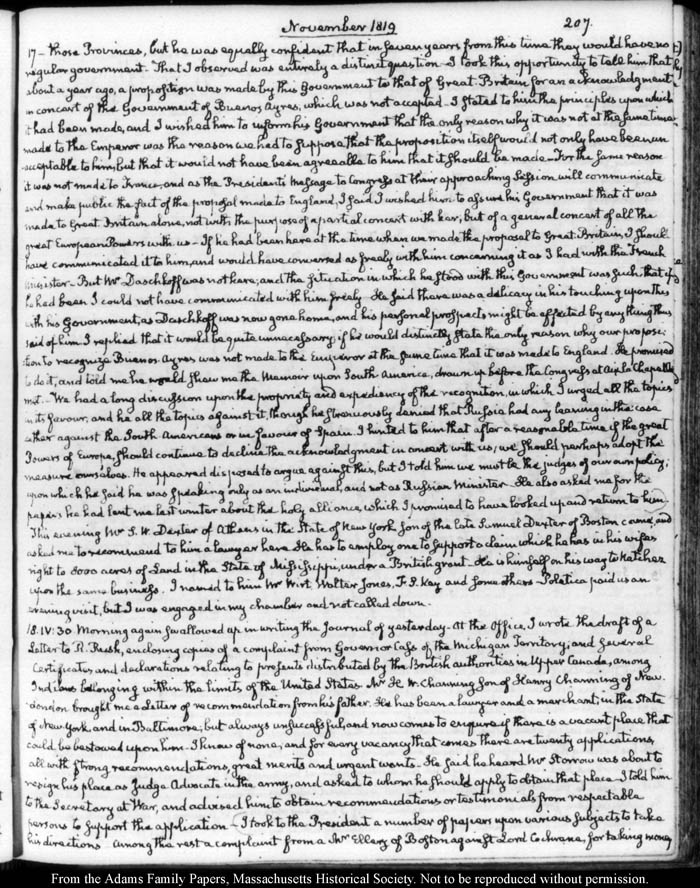 John Quincy Adams diary 31, 1 January 1819 - 20 March 1821, 10 November 1824 - 6 December 1824, page 207