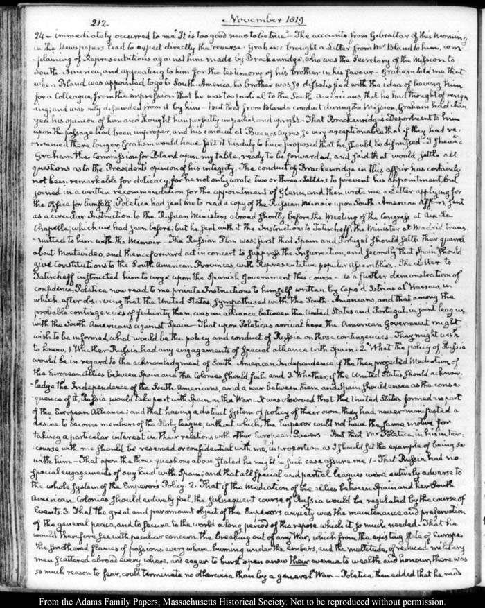 John Quincy Adams diary 31, 1 January 1819 - 20 March 1821, 10 November 1824 - 6 December 1824, page 212