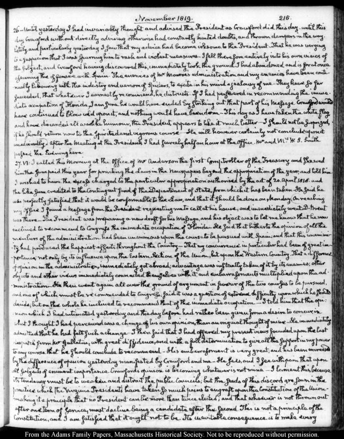 John Quincy Adams diary 31, 1 January 1819 - 20 March 1821, 10 November 1824 - 6 December 1824, page 215