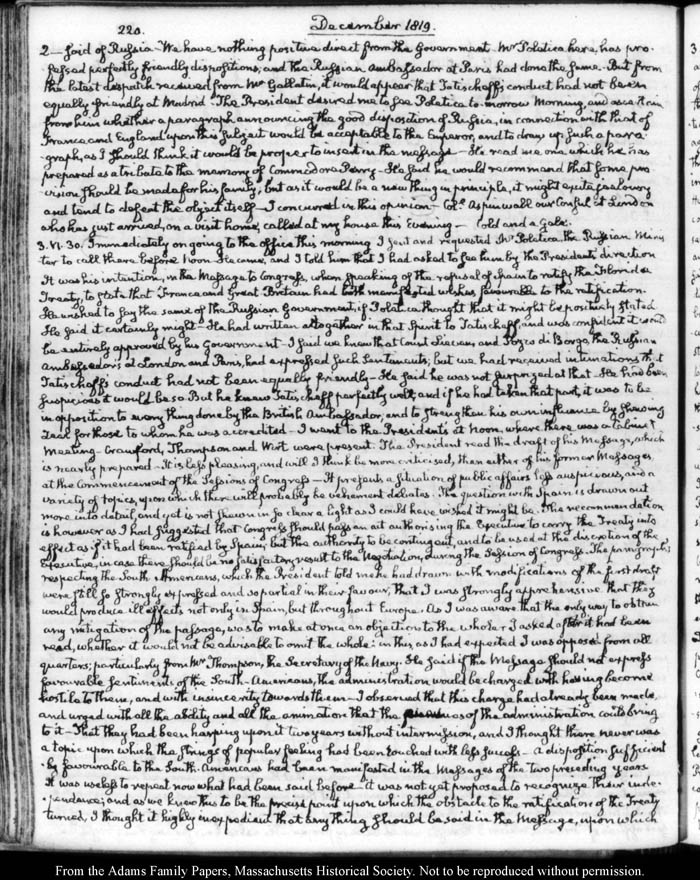 John Quincy Adams diary 31, 1 January 1819 - 20 March 1821, 10 November 1824 - 6 December 1824, page 220