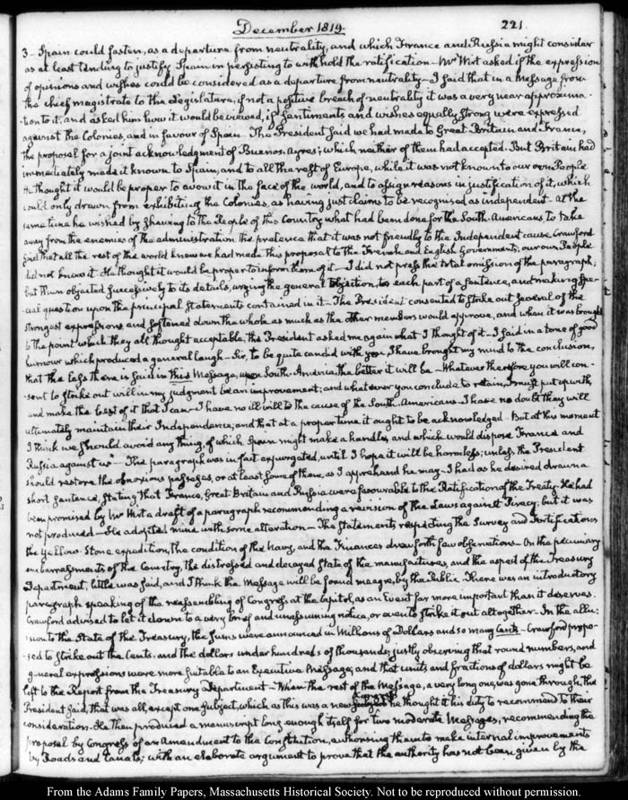 John Quincy Adams diary 31, 1 January 1819 - 20 March 1821, 10 November 1824 - 6 December 1824, page 221