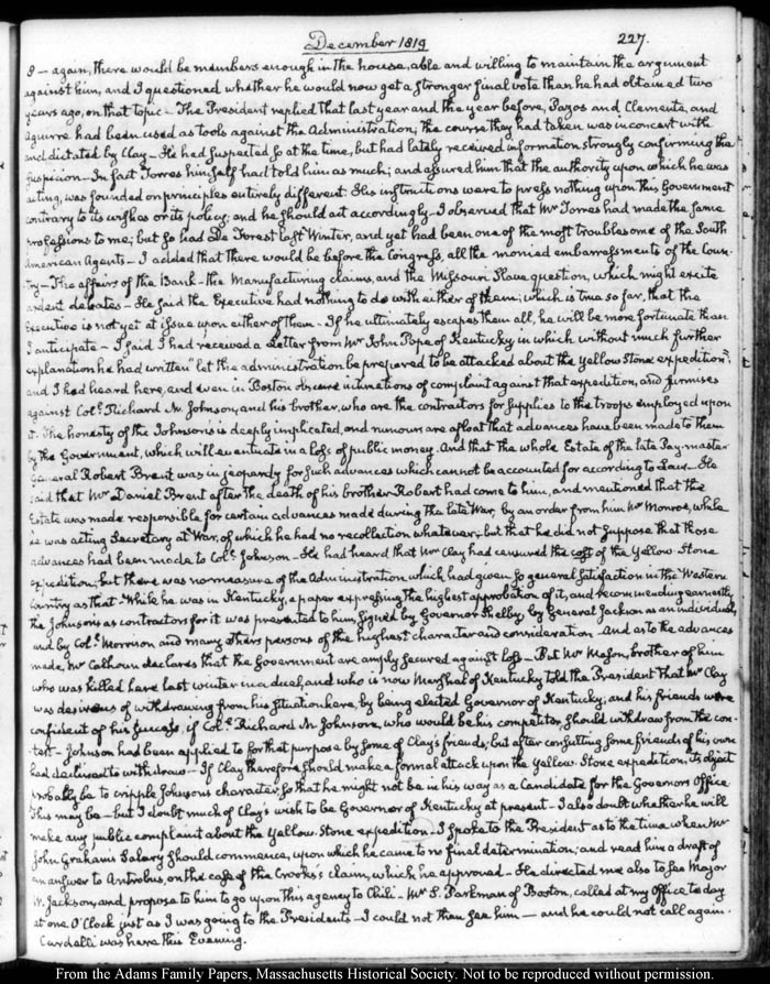 John Quincy Adams diary 31, 1 January 1819 - 20 March 1821, 10 November 1824 - 6 December 1824, page 227