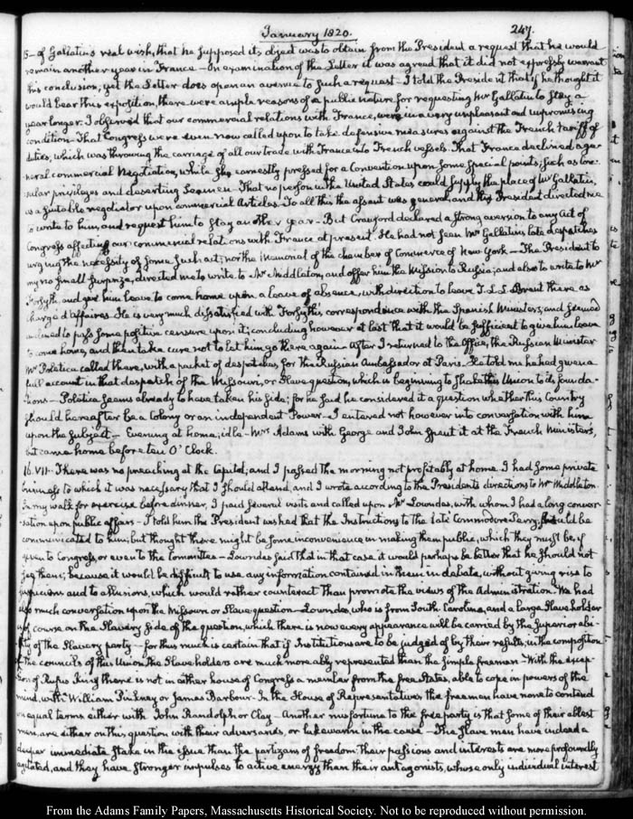 John Quincy Adams diary 31, 1 January 1819 - 20 March 1821, 10 November 1824 - 6 December 1824, page 247