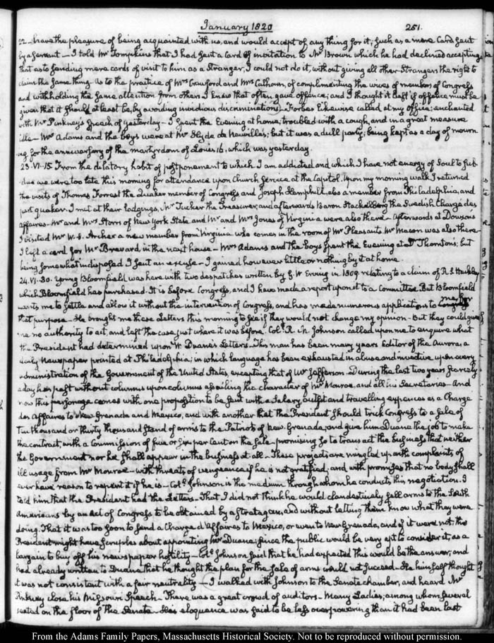 John Quincy Adams diary 31, 1 January 1819 - 20 March 1821, 10 November 1824 - 6 December 1824, page 251
