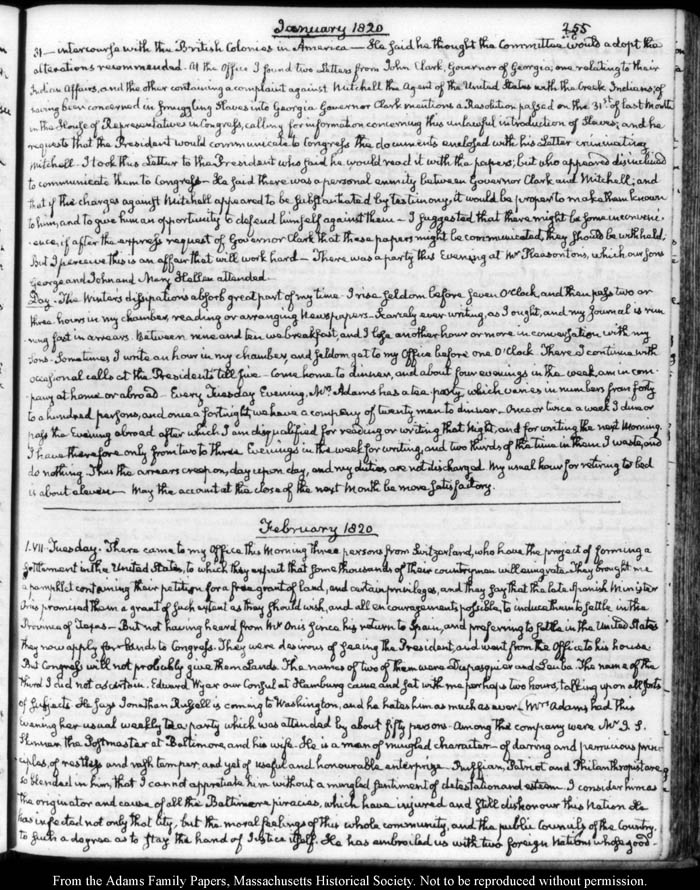 John Quincy Adams diary 31, 1 January 1819 - 20 March 1821, 10 November 1824 - 6 December 1824, page 255
