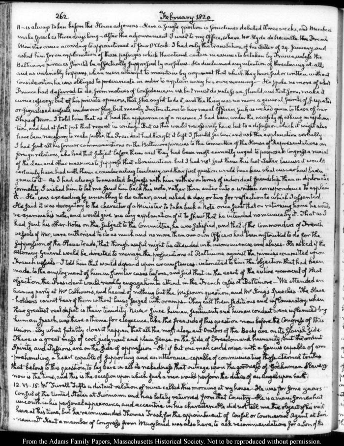 John Quincy Adams diary 31, 1 January 1819 - 20 March 1821, 10 November 1824 - 6 December 1824, page 262