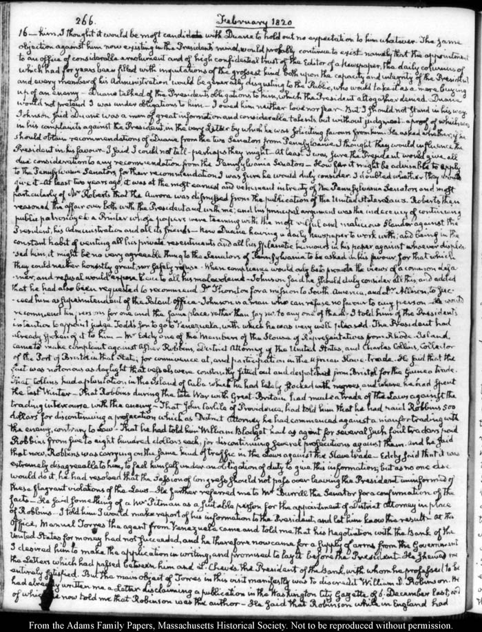 John Quincy Adams diary 31, 1 January 1819 - 20 March 1821, 10 November 1824 - 6 December 1824, page 266