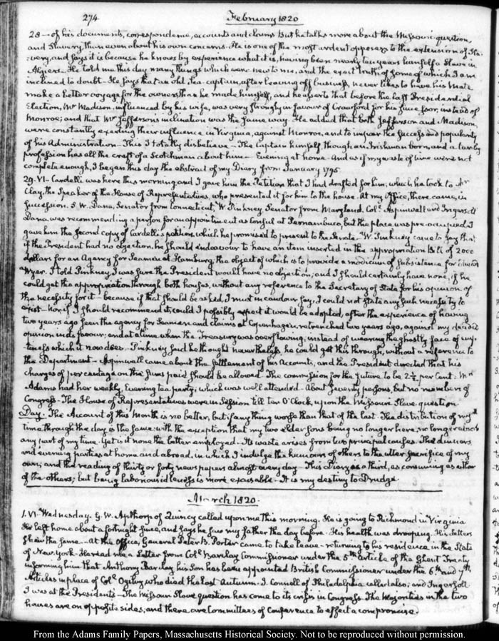 John Quincy Adams diary 31, 1 January 1819 - 20 March 1821, 10 November 1824 - 6 December 1824, page 274