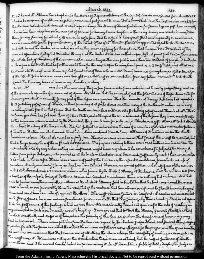 John Quincy Adams diary 31, 1 January 1819 - 20 March 1821, 10 November 1824 - 6 December 1824, page 283