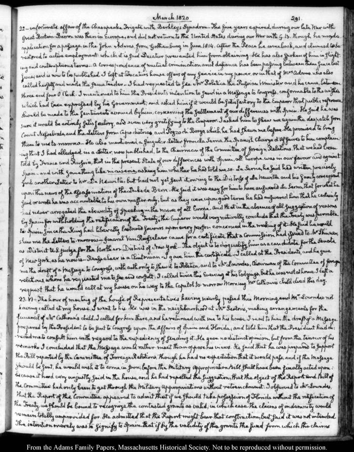 John Quincy Adams diary 31, 1 January 1819 - 20 March 1821, 10 November 1824 - 6 December 1824, page 291