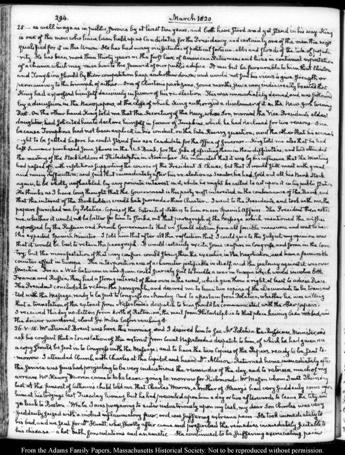 John Quincy Adams diary 31, 1 January 1819 - 20 March 1821, 10 November 1824 - 6 December 1824, page 294