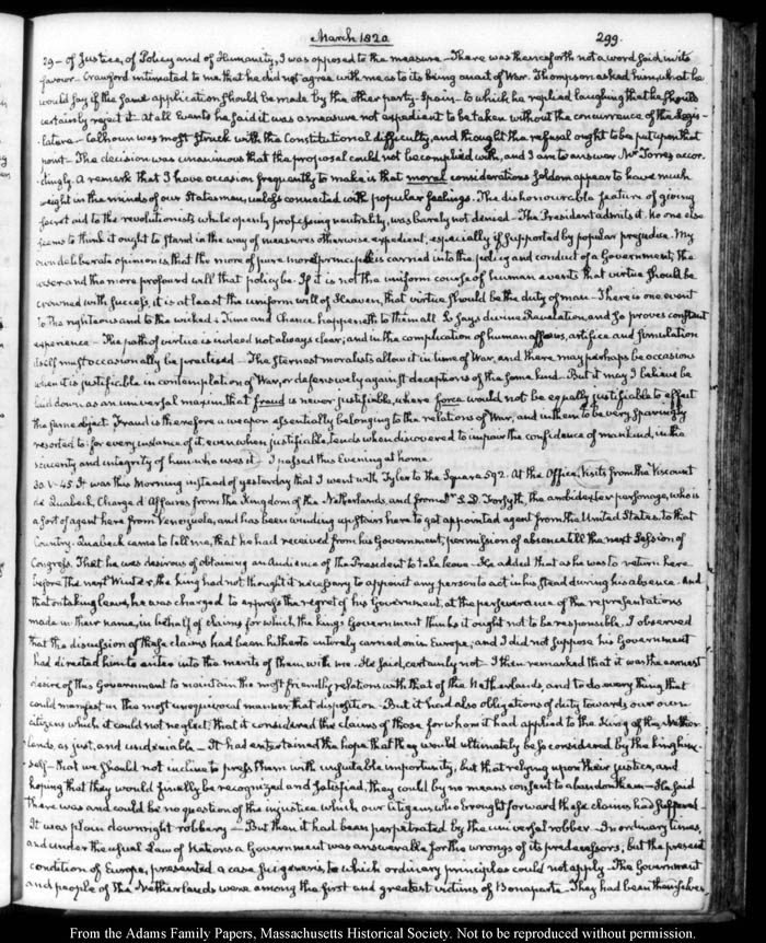 John Quincy Adams diary 31, 1 January 1819 - 20 March 1821, 10 November 1824 - 6 December 1824, page 299