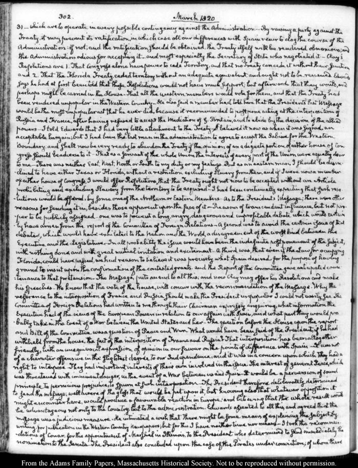 John Quincy Adams diary 31, 1 January 1819 - 20 March 1821, 10 November 1824 - 6 December 1824, page 302