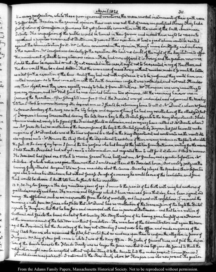 John Quincy Adams diary 31, 1 January 1819 - 20 March 1821, 10 November 1824 - 6 December 1824, page 311