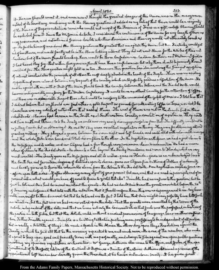 John Quincy Adams diary 31, 1 January 1819 - 20 March 1821, 10 November 1824 - 6 December 1824, page 313