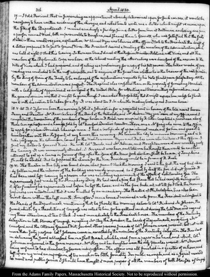 John Quincy Adams diary 31, 1 January 1819 - 20 March 1821, 10 November 1824 - 6 December 1824, page 316