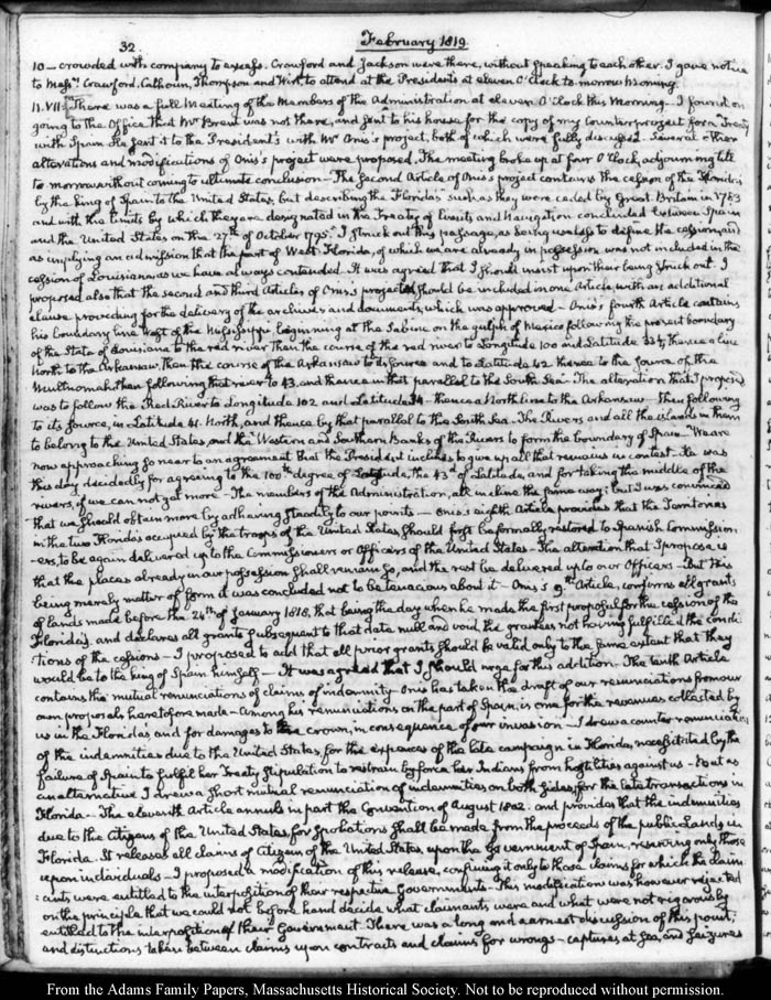 View full, authoritative transcriptions with page images of the diaries at John Quincy Adams Digital Diary part of the Primary Source Cooperative at the MHS.