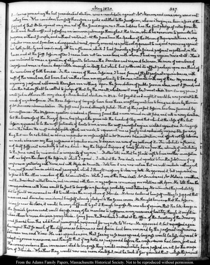 John Quincy Adams diary 31, 1 January 1819 - 20 March 1821, 10 November 1824 - 6 December 1824, page 327