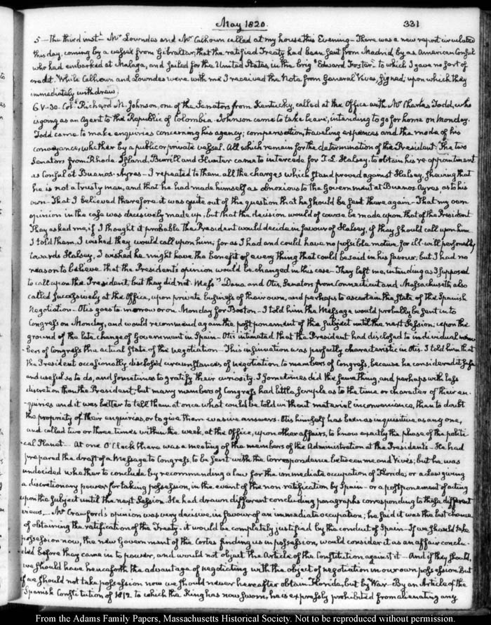 John Quincy Adams diary 31, 1 January 1819 - 20 March 1821, 10 November 1824 - 6 December 1824, page 331
