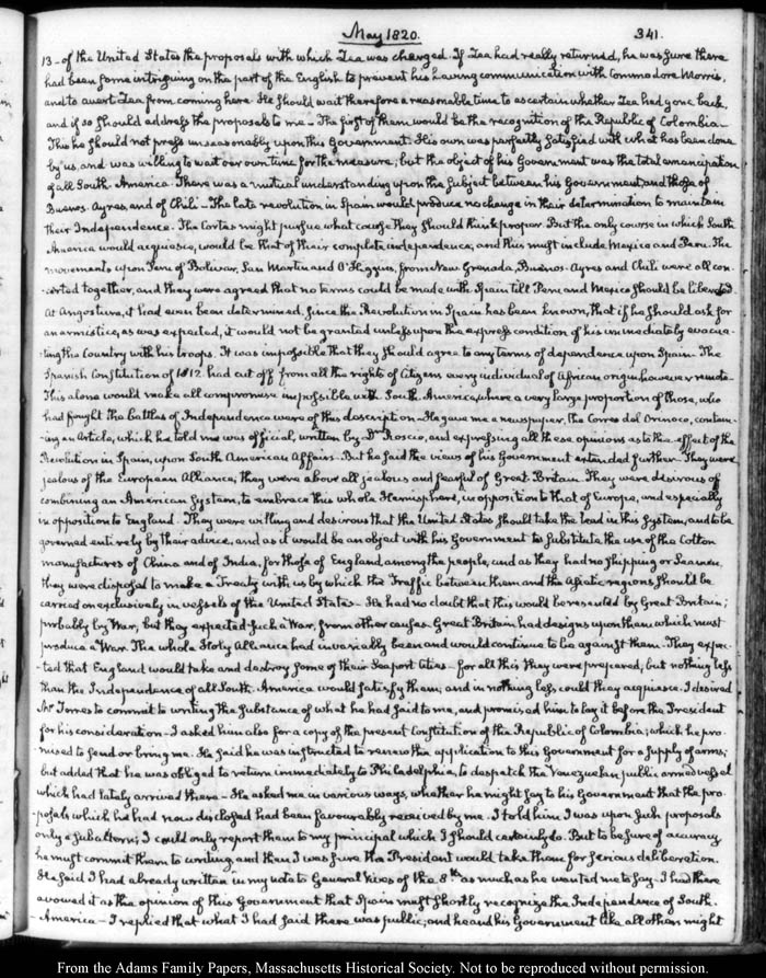 John Quincy Adams diary 31, 1 January 1819 - 20 March 1821, 10 November 1824 - 6 December 1824, page 341